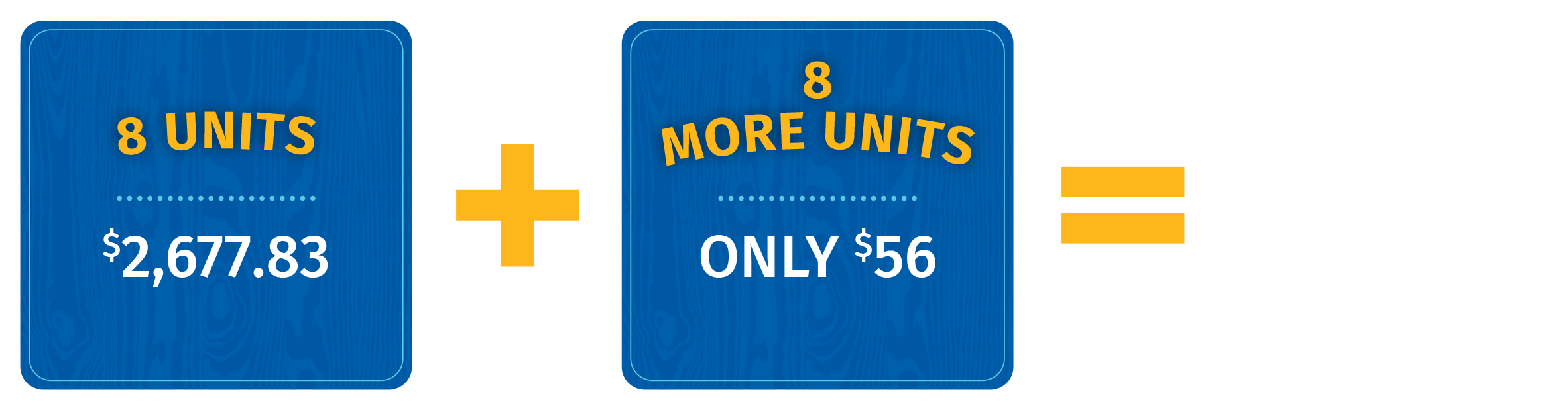 8 units at $2,677.83 plus 8 more units at only $56 equals hue savings