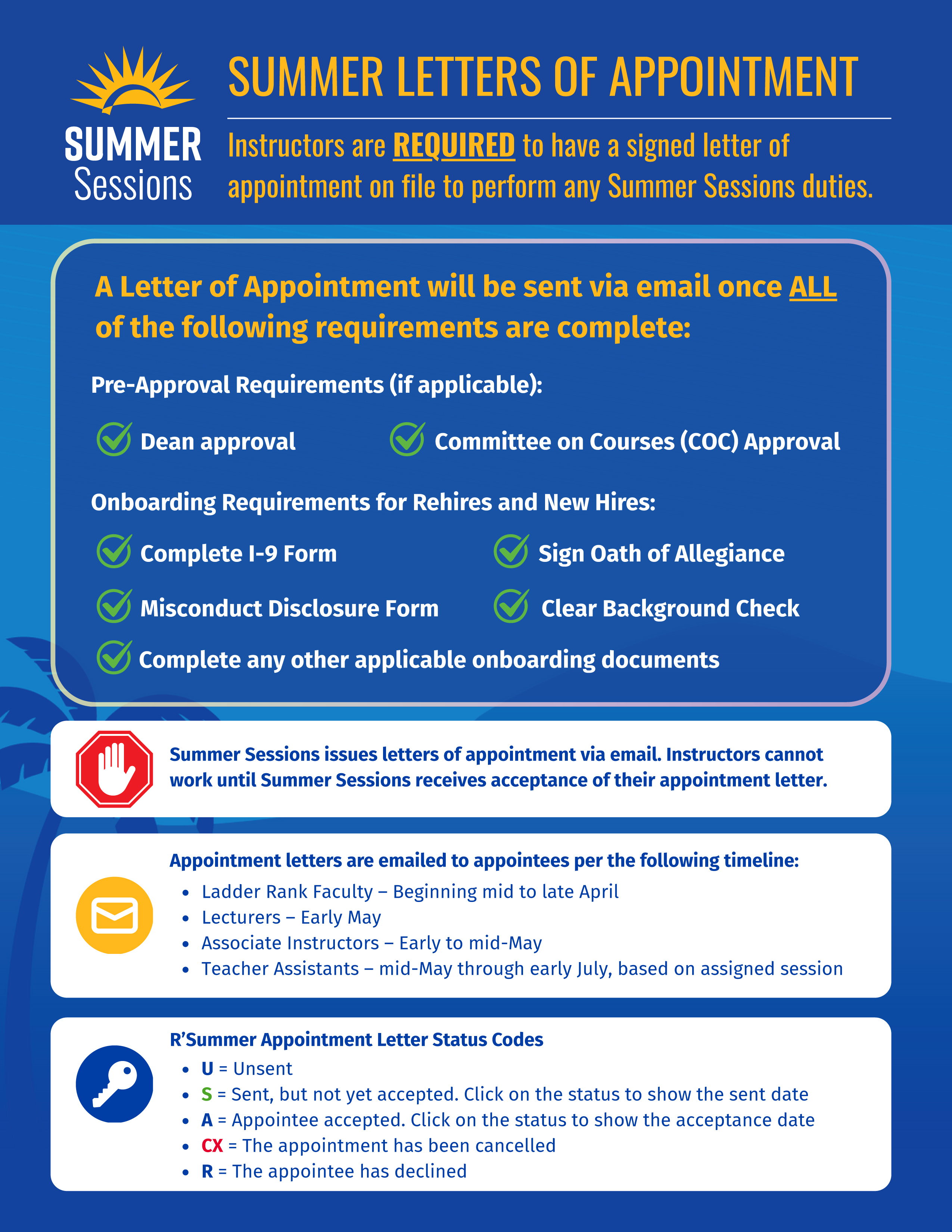 Infographic containing information about summer appointment letters